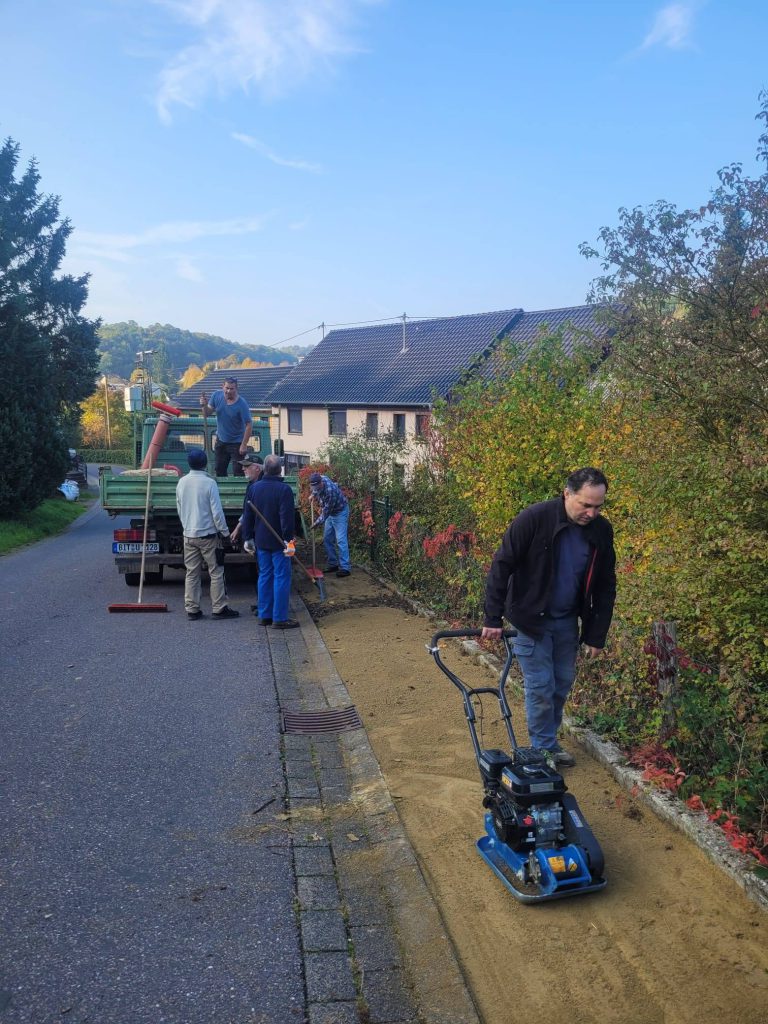 Mehrere Projekte konnten an diesem Tag umgesetzt werden, einige Größere, so wie das Ausbessern des Gehwegs entlang der Brunnenstraße und noch Kleinere, zum Beispiel das Anbringen eines Glaskastens am Gemeindehaus für Mitteilungen der Gemeinde, sowie ein Kümmerkasten für Anliegen an den Gemeinderat. Alle für diesen Tag geplanten Projekte wurden umgesetzt und die Helfer freuten sich über die geleistete Arbeit. Wir hoffen jetzt, dass sich an der Verschönerung des Dorfes alle Einwohner freuen.